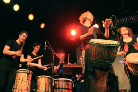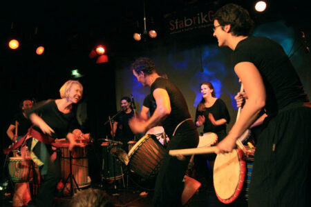Die Band NABUM ist das Bühnenprojekt der Rhythmusschmiede beatfactory. Raffinierte Arrangements traditioneller Djemberhythmen, abwechslungsreicher Einsatz afrikanischer Percussionsinstrumente und heiße Tanzchoreografien charakterisieren das mitreißende und dynamische Programm des Ensembles. Auf Djemben, Basstrommeln, Schlitztrommeln, Talking Drums und jeder Menge Kleinpercussion wird durch die komplexe und zugleich atemberaubend schöne Rhythmuswelt des Mandeng gereist, als fahrbarer Untersatz dient jedoch kein traditionelles, sondern das moderne Vehikel kunstvollen Arrangierens. Das beatfactory stageproject zündet ein musikalisches Feuerwerk. Das Fest kann beginnen.